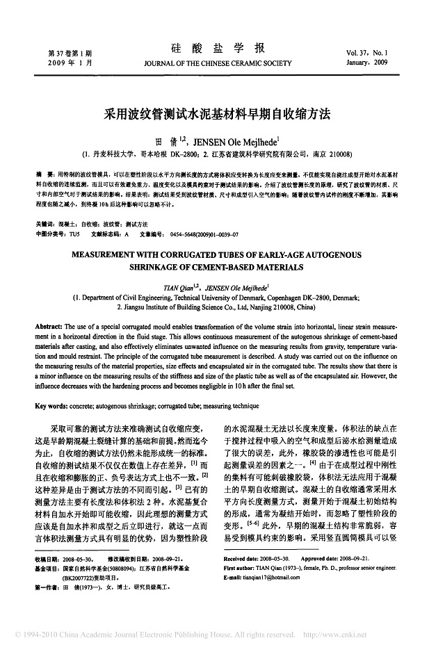 行業(yè)論文——采用波紋管測試水泥基材料早期自收縮方法