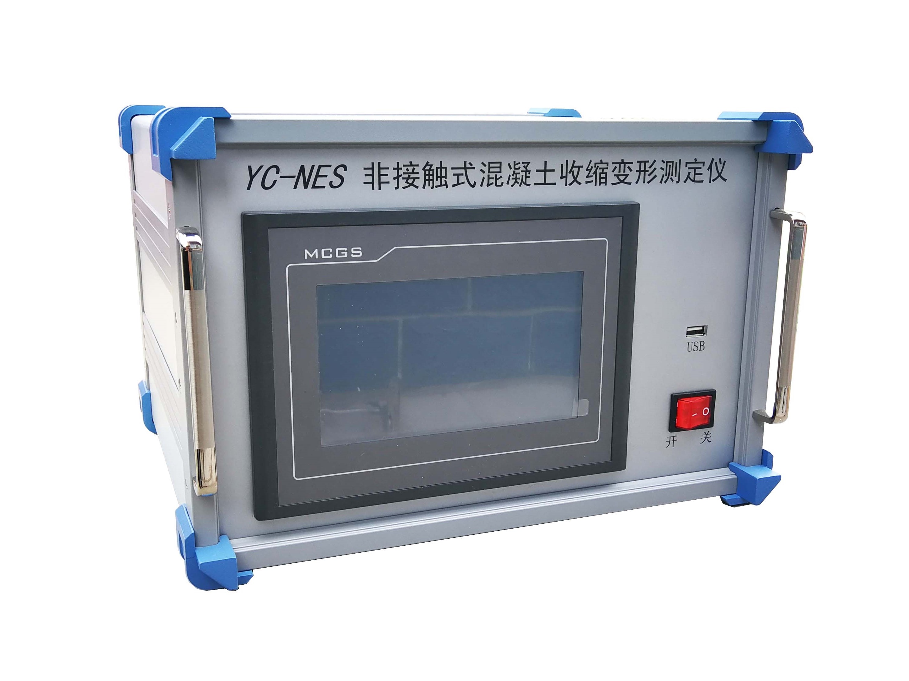 在澆筑過(guò)程中,向試模內(nèi)兩側(cè)放置埋入式鋼板,使鋼板伸出混凝土上表面,形成外伸骨料——既可以與混凝土收縮膨脹協(xié)同變形,又能夠在外伸表面進(jìn)行操作。通過(guò)固定于試模上的電渦流位移傳感器與埋入式鋼板之間的信號(hào)反饋?zhàn)饔?,轉(zhuǎn)換成位移信號(hào)反應(yīng)混凝土試件的收縮大小。如需了解試驗(yàn)操作過(guò)程,請(qǐng)加微信TRQPS888,備注非接觸收縮。儀器外觀如下: